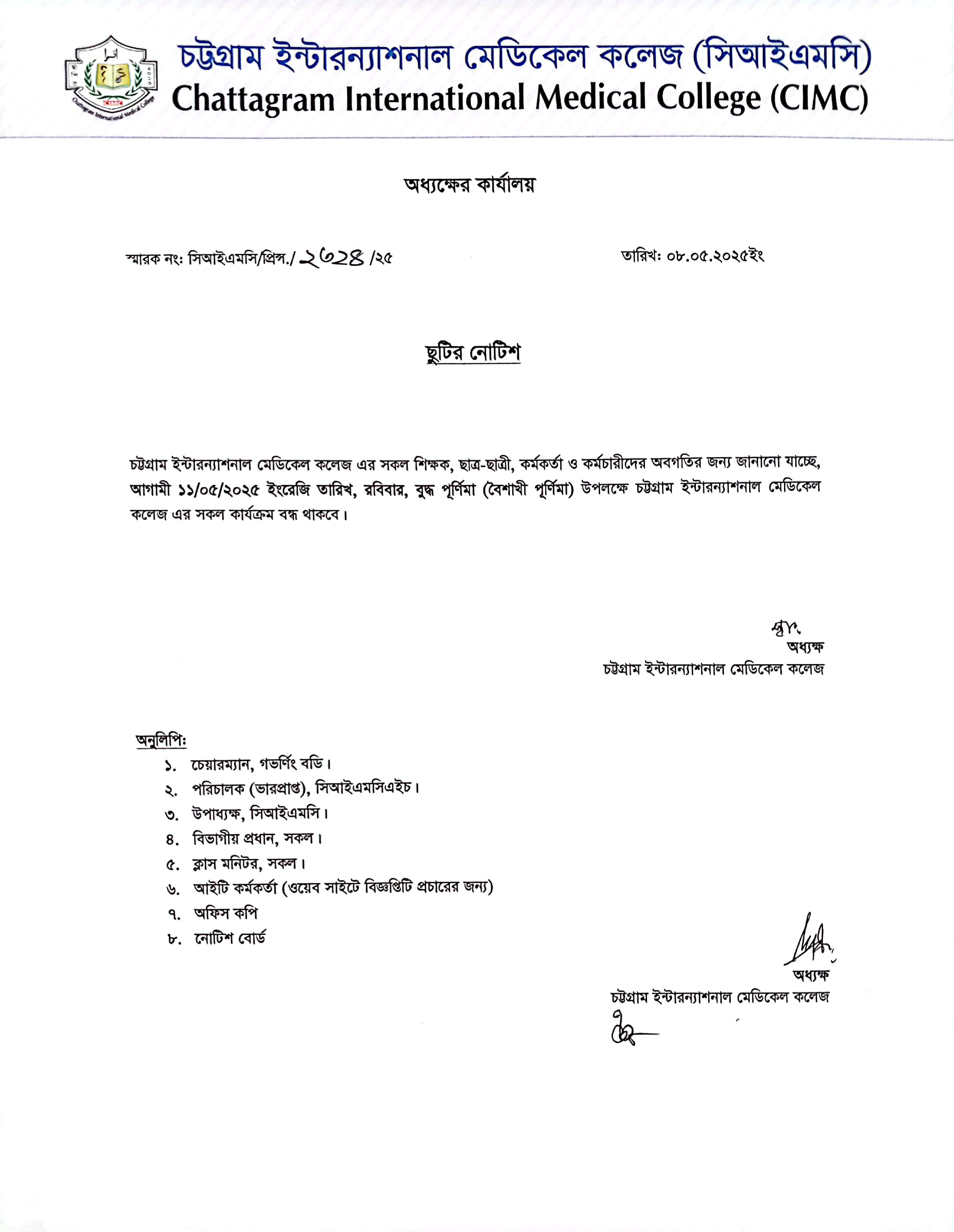 ছুটির নোটিশ |