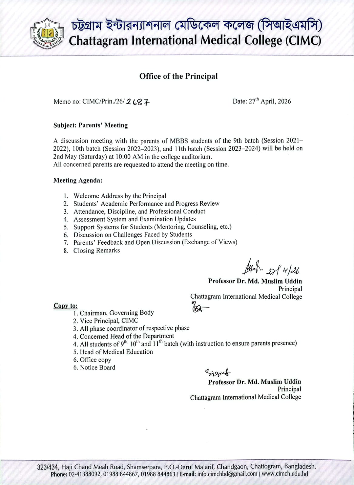 Seat Plan for CIMC Lecturer |